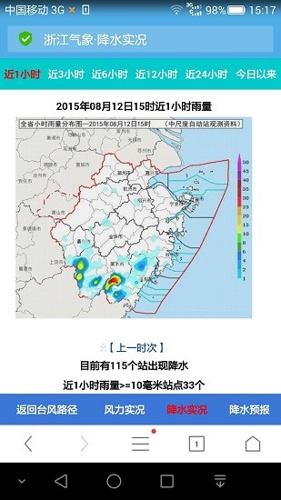提供浙江实时的本地风况信息、小时降雨等专业探测服务。