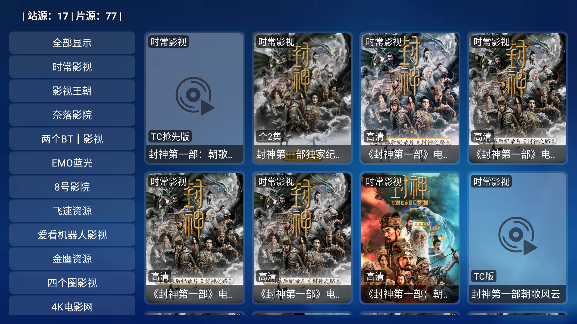 4.导入成功后首页可能无法加载出影视资源,你可以通过搜索直接找到想看的内容