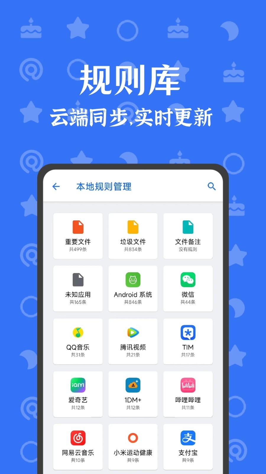 2.可以自由添加垃圾清理规则,让你快速清理不想要的手机文件。