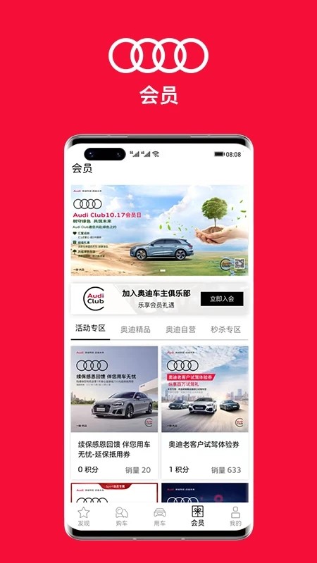 【会员】缤纷权益,尊享会员 | Audi Club专属会员礼遇,奥迪精品/奥迪自营,精彩活动随时参加,更有秒杀专区等您体验