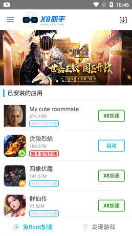 【步骤二】启动助手,选择游戏,点击“X8加速”;