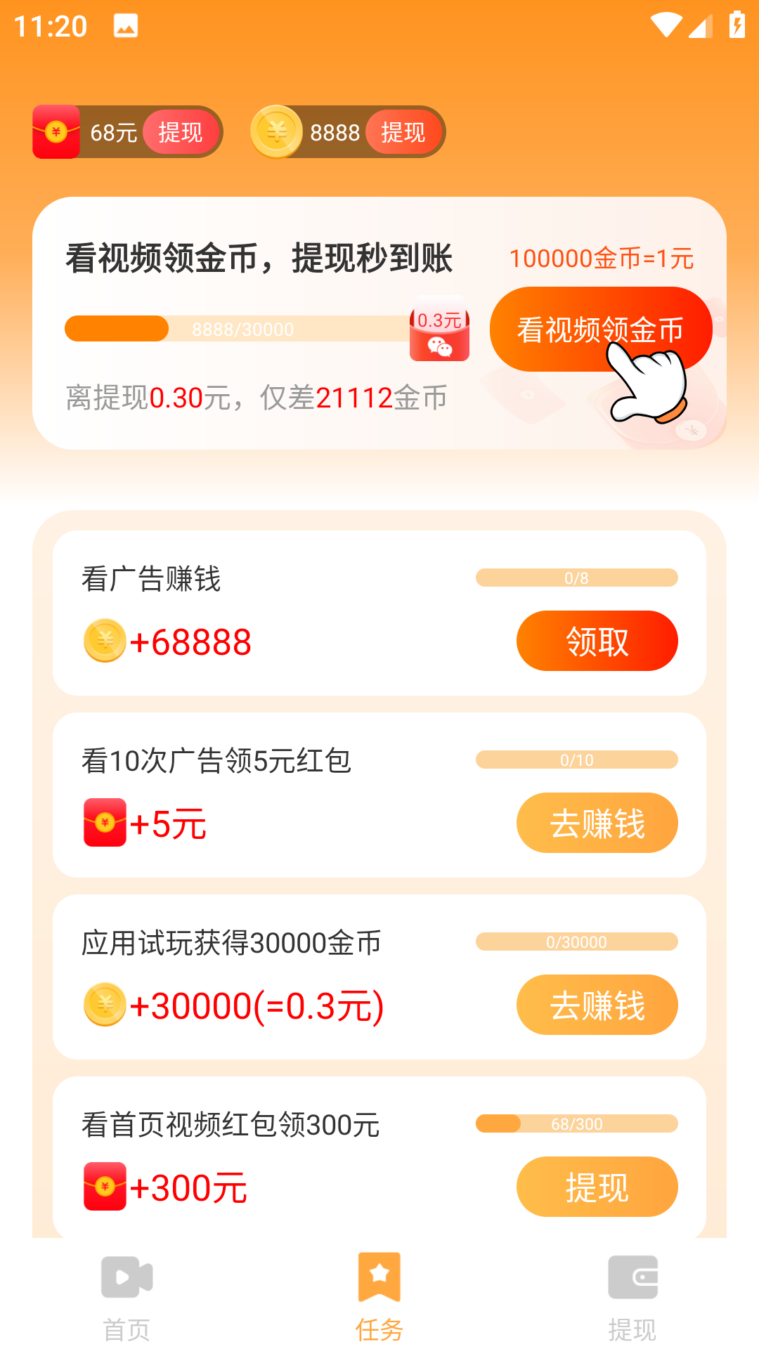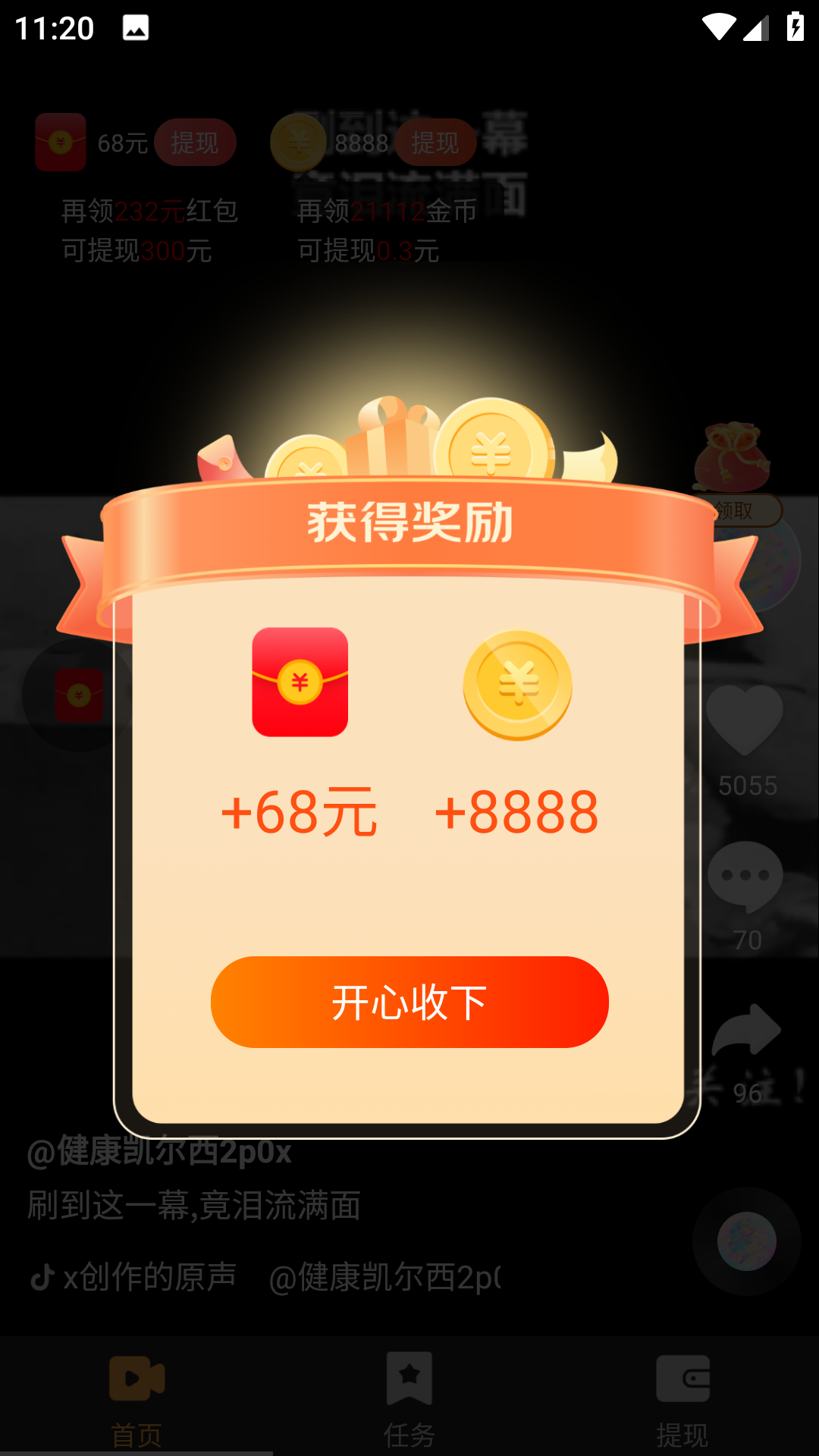 3.你可以观看整个短视频或分享它来赚取硬币,并将赚取的硬币兑换成提款。