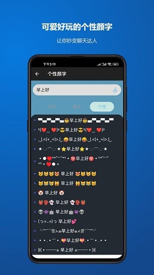 在聊天时个性颜字让你的文字变得个性又有趣,只需要输入后长按想要的那串文字复制即可使用。