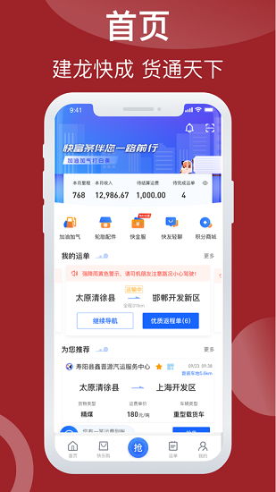 建龙快成司机app可以让司机们轻松的入驻平台,可以接收到来自全国各地的货运订单,每天都可以按照地区来筛选相应的订单,让大家接取都非常的轻松。线上整合的各种订单都可以查看详情,按照自己的需求来进行接单了。