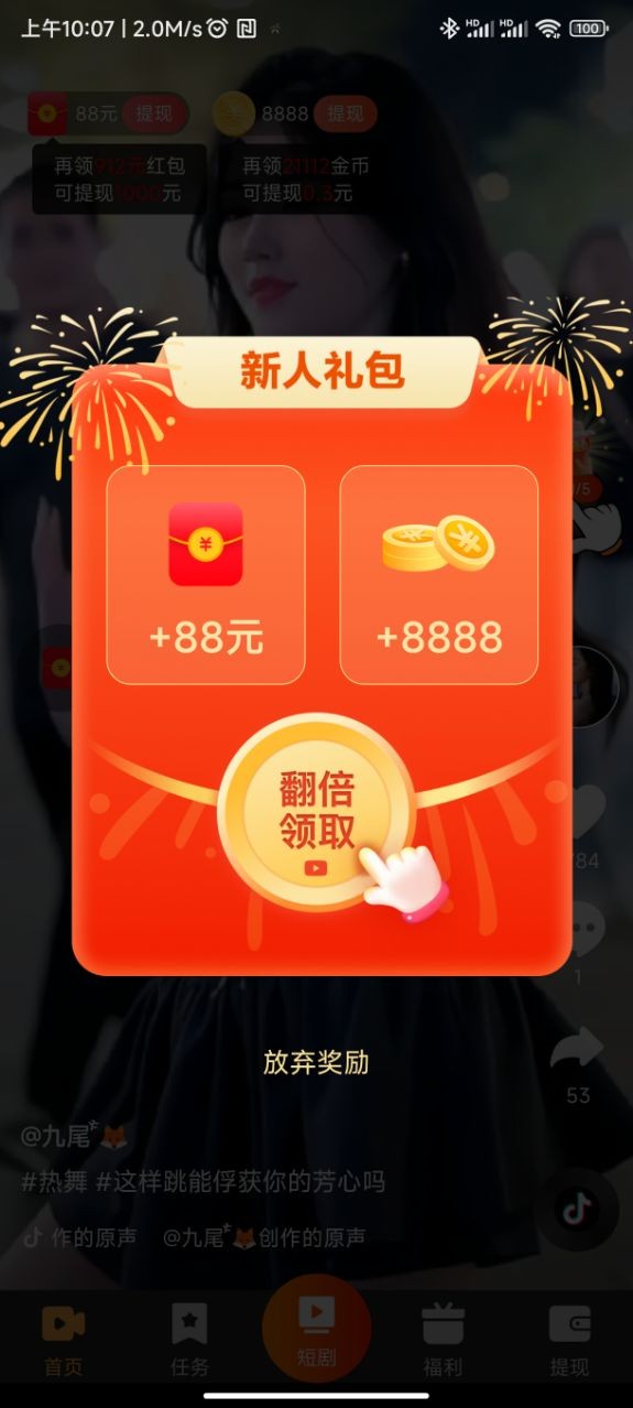 抖看短视频app是一款最近非常火爆的短视频软件,因为这款软件可以通过刷视频赚钱,超多视频资源你只需要观看喜欢的视频就能获得红包奖励,累计收集红包即可兑换提现,快速到账真实靠谱,快来下载吧!