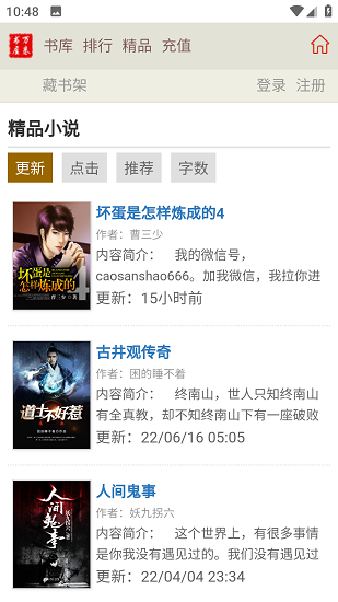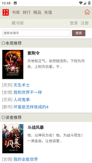 4、遇到喜欢的小说都是可以加入到书架中,能登录进行多端同步。
