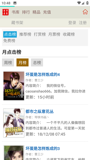 2、可以查看近期热门的小说资源了,都是可以按照喜好进行选择。