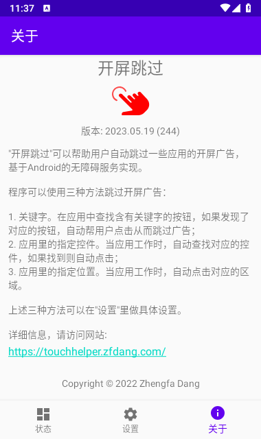 开屏跳过app是一款专为用户跳过开屏广告的辅助工具,让你可以体验流畅干净的应用。支持用户自定义广告跳过规则,你可以适配大部分的安卓手机,可以让所有的应用完成广告跳过,非常的强大,而且免费使用。