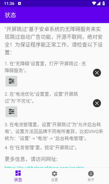 1.在安装完成后,用户可以直接前往设置中心开启自动跳过功能,从而不再被广告所困扰。