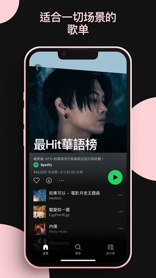spotify安卓下载官方正版为大家带来了多种语言的音乐资源,在这里都是可以自由搜索想听的音乐,近期热门的音乐都可以轻松的进行点播。每天可以将找到的心仪音乐加入到自己的歌单中,想什么时候播放音乐都是可以的。