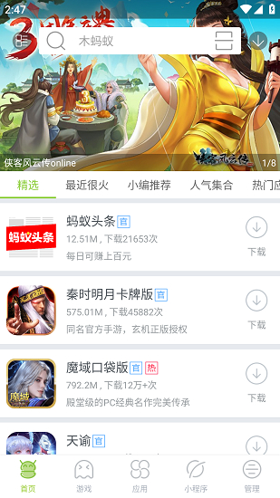 木蚂蚁已收录数万款适合国内用户使用的应用及游戏,囊括国内几大安卓资源站的数据及民间汉化组大量汉化作品。