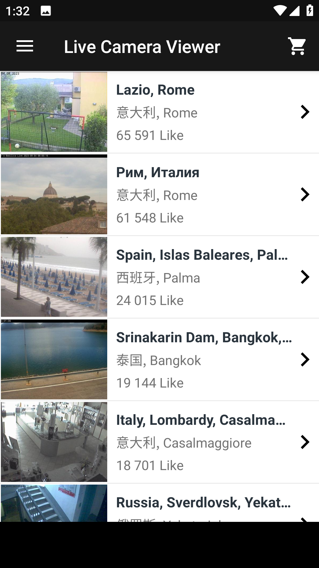 1.通过该应用程序,用户可以实时查看全球各地的摄像头视频,包括城市街道、监控公司大楼、海洋和湖泊景色以及植物和动物的观察。