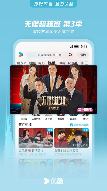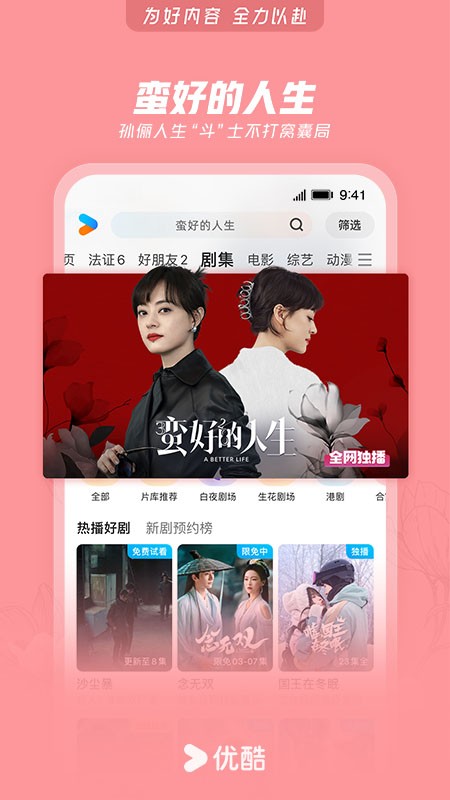 优酷视频免费下载2025最新版本可以让大家在线看超多独播热剧,每天都会更新非常多的剧,让大家在分类轻松挑选想看的剧,在主页上也可以查看各种推荐的剧。线上可以自由搜索心仪的剧,每天登录也可以记录播放历史。
