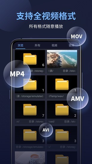 1、平台上带来了全能视频播放器,支持各种格式,极速进行播放。
