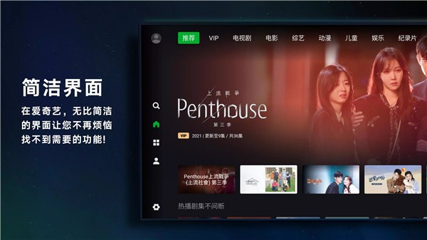 爱奇艺tv版是一款可以在电视上打开的视频播放软件,这款软件也可以为在国内外提供大量的视频资源。Galaxy Kiwi视频播放非常流畅,没有卡顿或黑屏,用户可以自由切换各种分辨率。在内容方面,它集成了来自中国视频网站爱奇艺的所有高清合法视频内容。该软件还具有多窗口切换视图模式,允许用户设置个性化主页。它的受欢迎程度和列表内容都会立即更新,有需要的用户赶紧下载试试吧。
