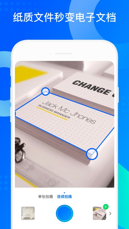 名片扫描存储:自动扫描名片,并识别名片信息,一键存储到手机通讯录,商务人士必备神器。
