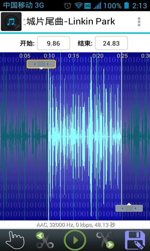 7. 区间完成后,点击中间的播放按钮试听。如果不满意,可以多调整几次。调整后,可以保存铃声并使用。