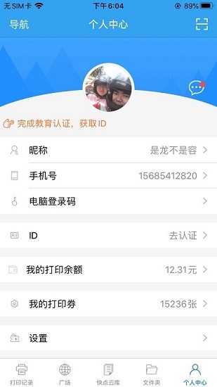 1、首先打开快点云打印app,登录后进入【个人中心】。