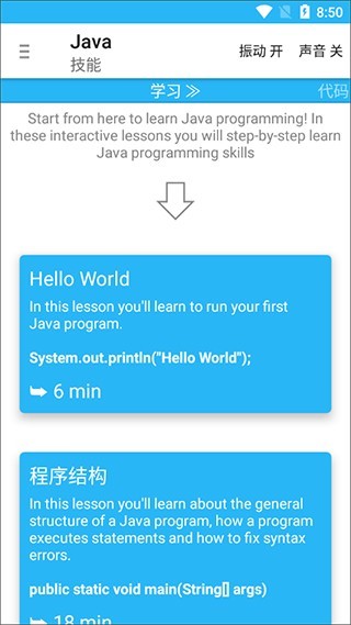 4、本教程最后一点,如果你想新创建一个工程可以在主界面(就是点击“No thanks”之后的界面),点击左上角的“Java Skills”到这个界面, 手指向左划,滑倒最后一个界面,