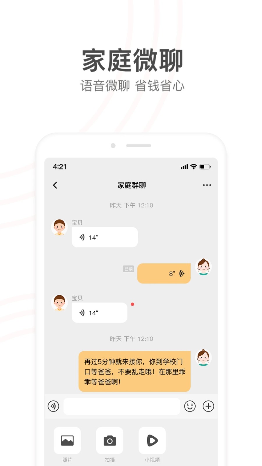 微信:实时语音聊天让孩子更容易沟通,让家庭关系更加亲密和谐。