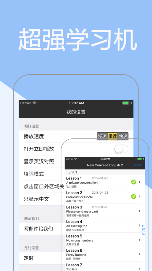 1.新概念英语这里有全书内容,所有内容都打包在app中;