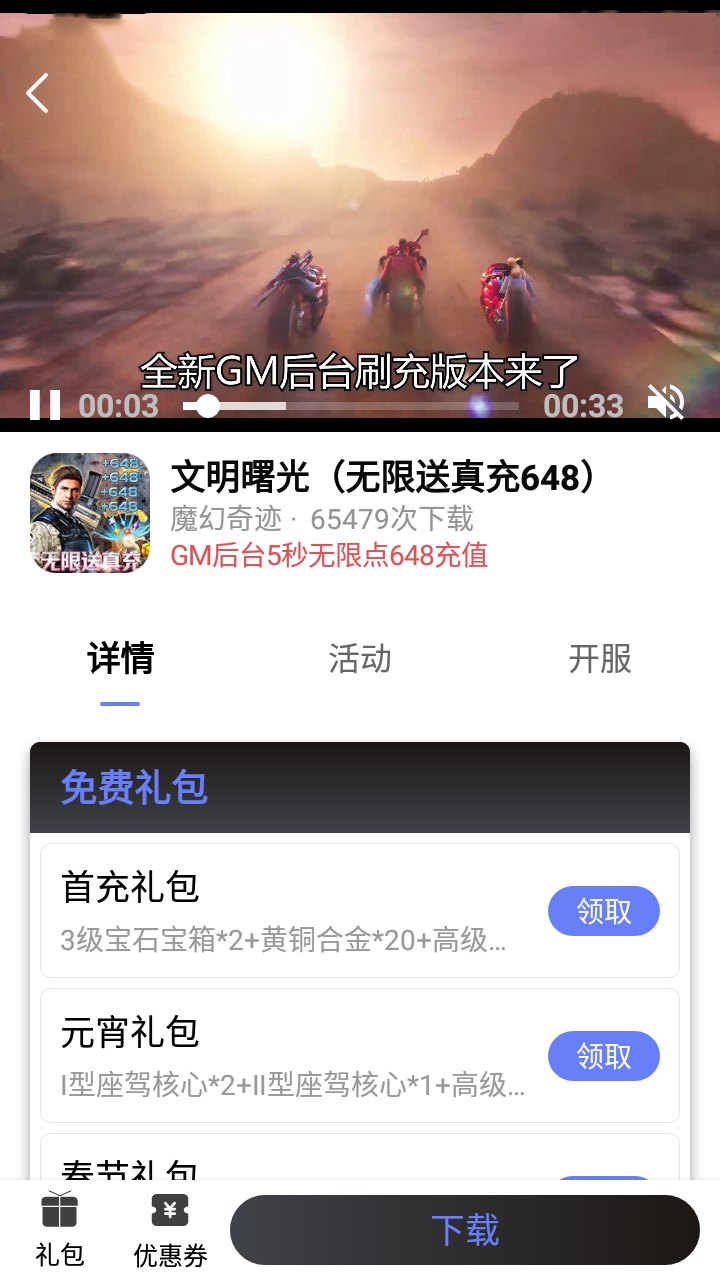 最新的游戏礼包合集,每天都会放出礼包福利,包含万元真券。