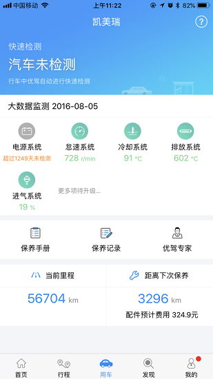 2、可以在这里对汽车进行实时的监控,每天出行都可以检测汽车隐患。