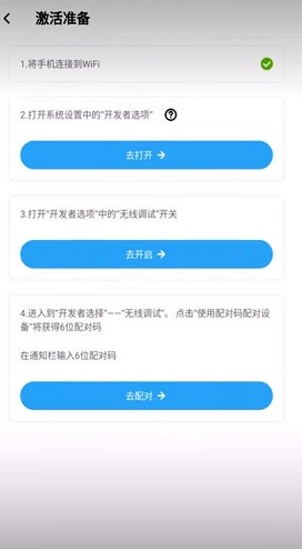 2、在激活准备页面依次完成待开启的步骤;