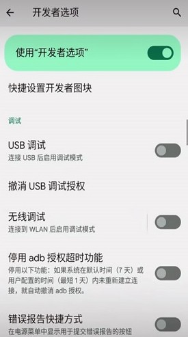 4.打开后,返回开发者选项界面,开启无线调试功能;