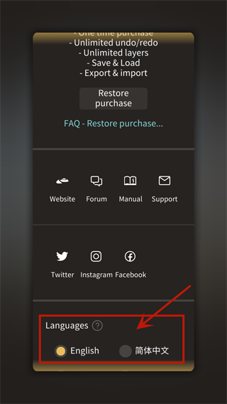 4、滑到下面,找到多语言切换功能,也就是languages这个项目。