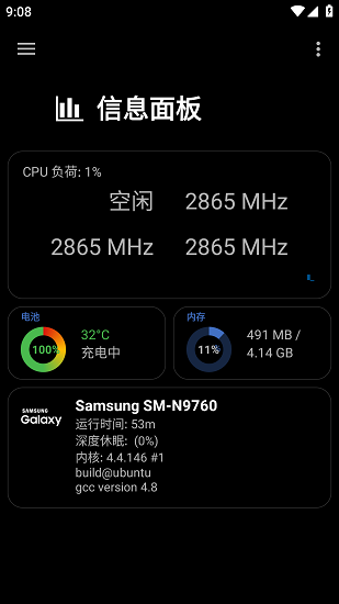 2、能够观察手机CPU的状态,温度也是会显示的,自由的查看。