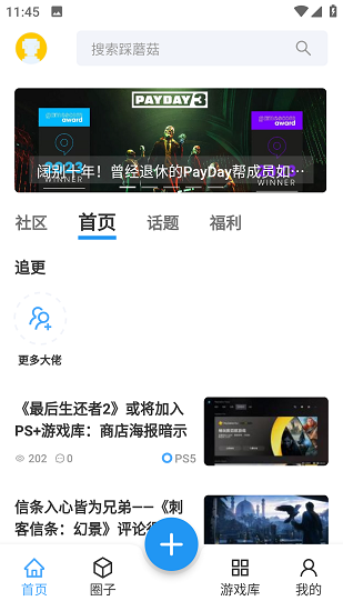 踩蘑菇app手机版可以让大家在这里找到超多硬核游戏玩家,每天都可以查看各种游戏的资讯,还可以在社区中讨论近期发售的游戏,在游戏库中也可以评价自己玩过的游戏,日常加入各个游戏圈子都可以的。