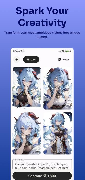 5.使用多样化的AI图像模型和风格来创建自定义头像、动漫插图、绘画以及作为视频、角色扮演游戏和图形设计的视觉资产。