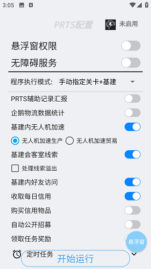 再次点击电源图标会关闭整个悬浮窗,点击三角图标开始运行,选择要刷的图,可以自动勾选代理指 。