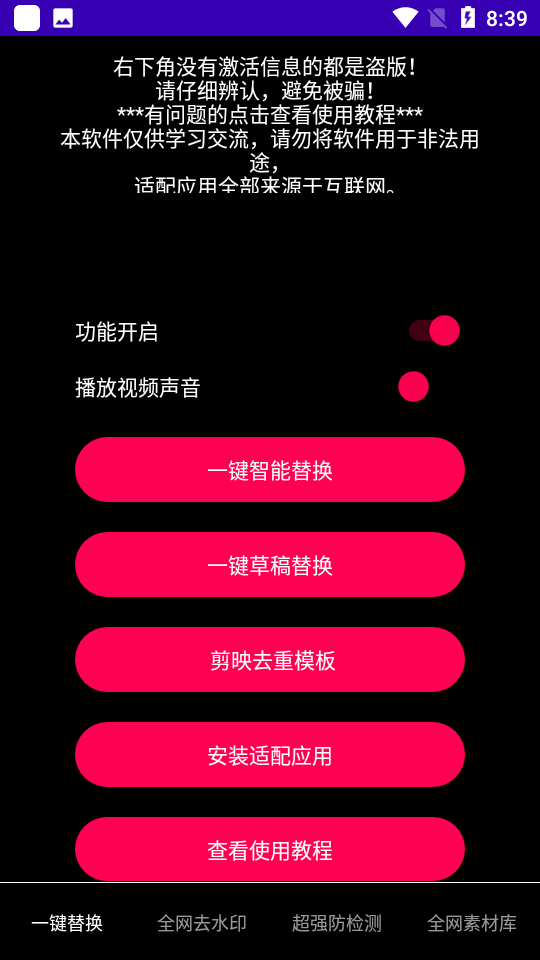 2.增加了一键去水印、草稿替换、剪映模板等多重功能,囊括了市面上的所有玩法,这使得这款软件在功能上非常丰富,可以满足用户多样化的需求。