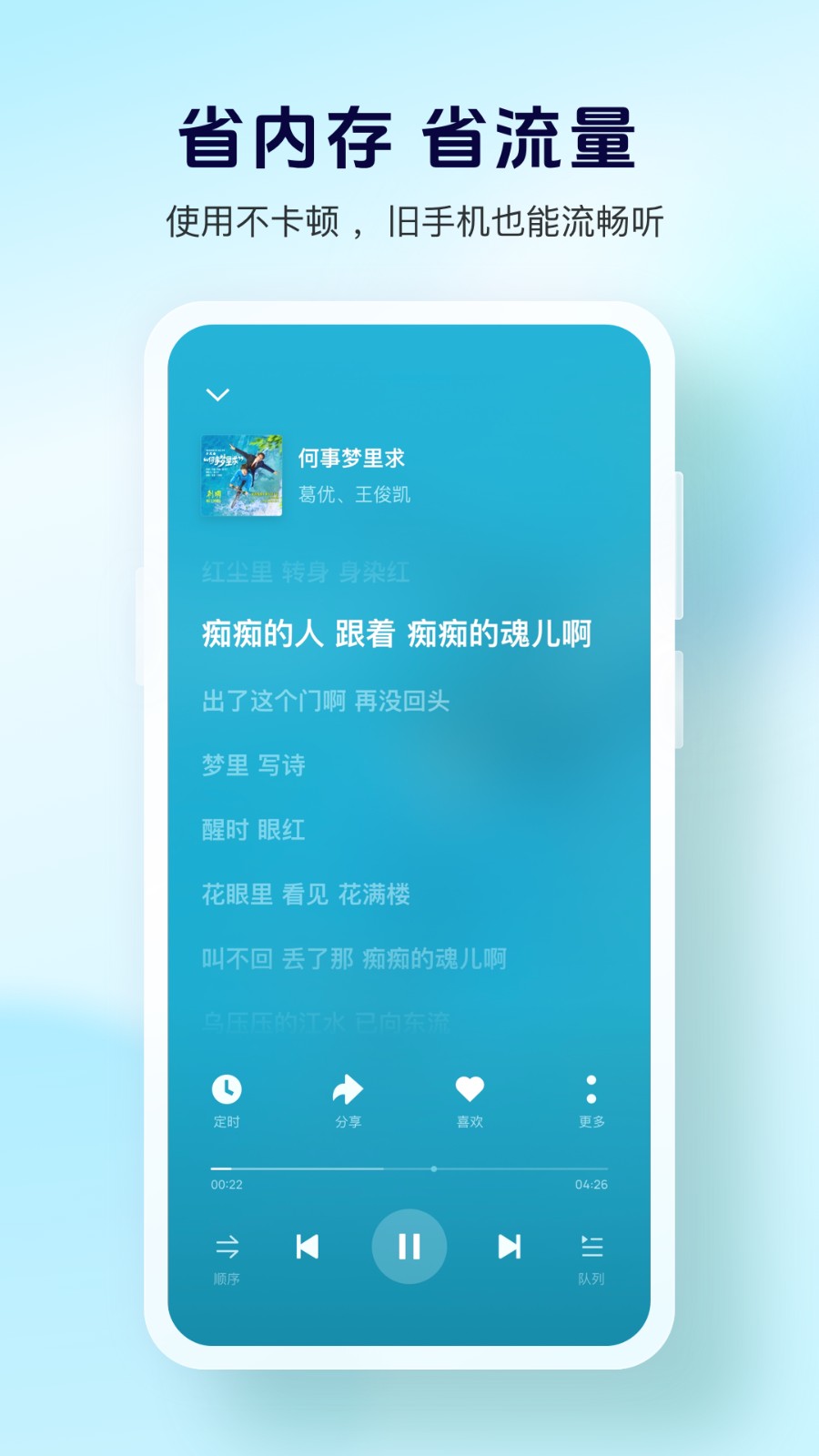 经典老歌、广场舞、红歌、民乐、戏曲、轻音乐、应有尽有,不仅为你定制,还能听歌识曲。