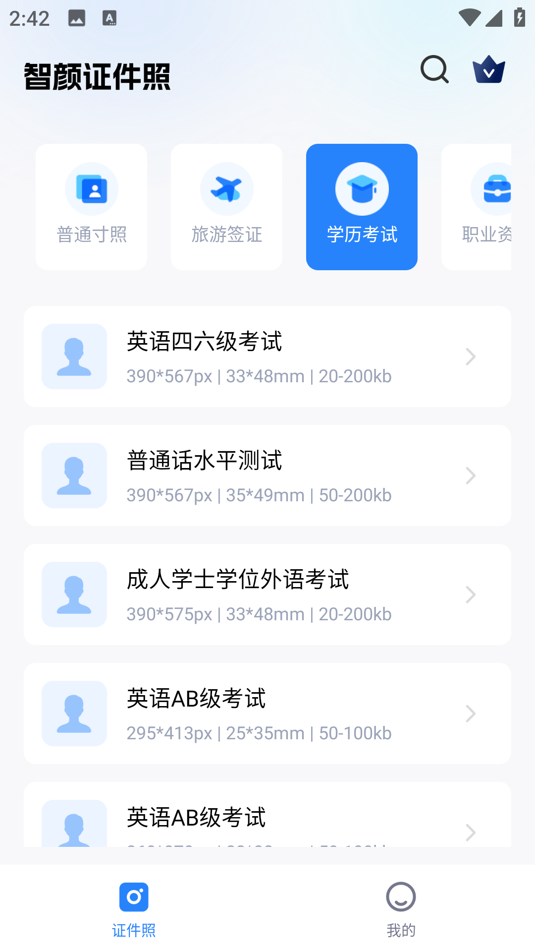 智颜证件照app是一款可以生成多种规格证件照的实用工具,目前为大家带来了普通的自定义尺寸证件照,旅游签证,学历考试,公务员,驾驶证,居住证,社保卡等等丰富的证件照片生成功能。