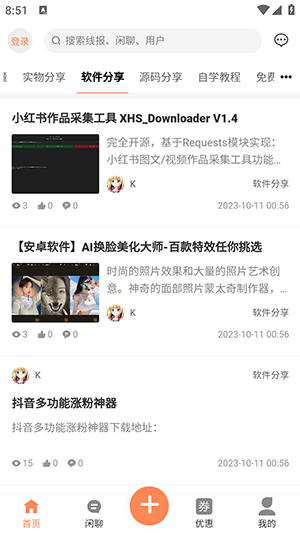 酷猫社区app是一款为大家持续更新分享软件资源,便宜好物,代码技术,教学课程等内容的社区平台,用户可以在这里找到很多实用的资源,不论是有什么疑问和需求都能发布帖子在这里寻找答案,超多大神在线问你解答,快来下载体验吧!