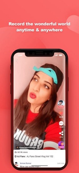 vmate是一款短视频软件,在这款软件中它有才艺表演、有趣的活动记录等多种类型,还会根据你的喜好进行推荐。它非常智能且易于使用,您还可以与平台上的主播互动,你不仅可以看到很多精彩的视频,还可以制作自己的视频并上传,同时还聚集了很多才华横溢的印度朋友,有需要的用户赶紧下载试试吧。