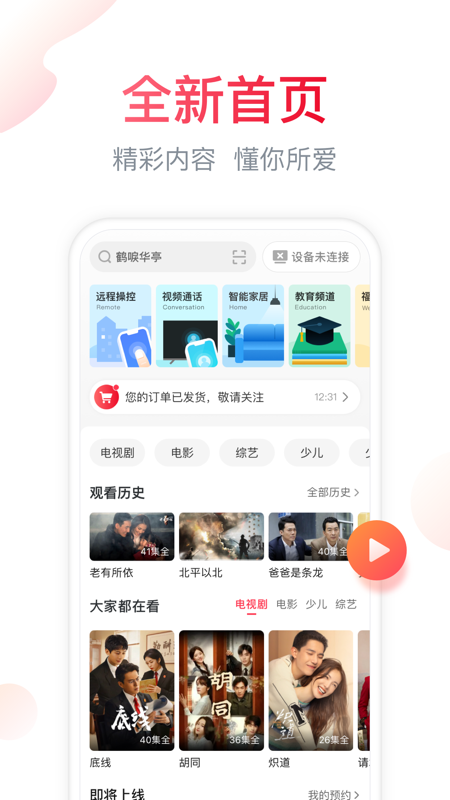 2、【视频通话】支持手机电视视频聊天功能,您可以随时与家人免费聊天。