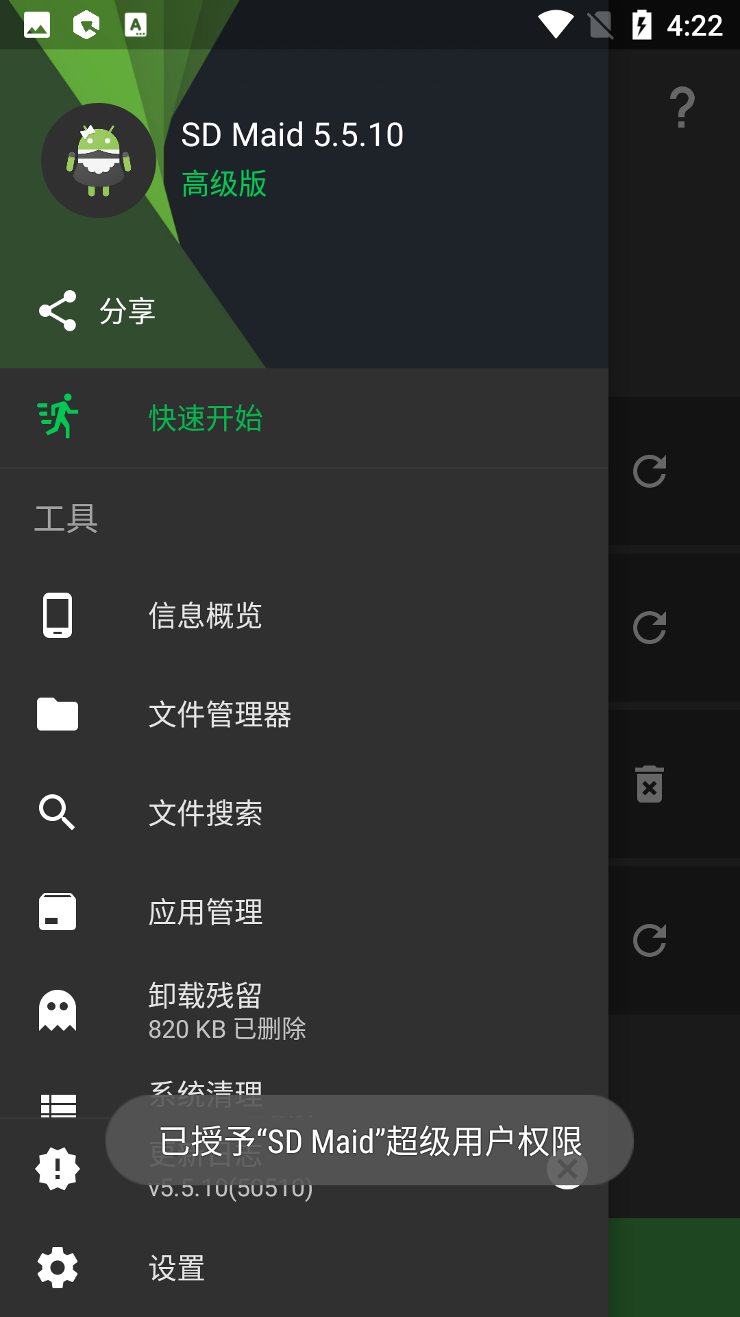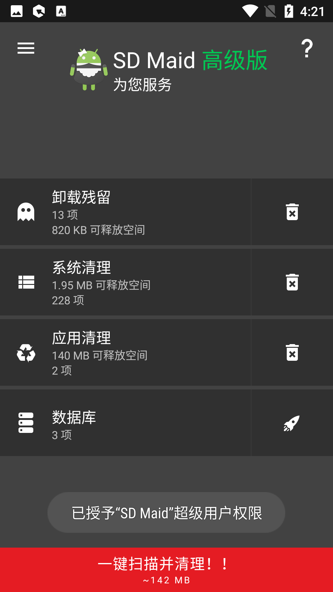 特别说明一下,SDmaid需要root后才更加好用,清理的垃圾更多,无root状态下,“应用清理”这边只能清理少量垃圾。