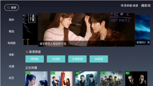 i酷影视TV电视版是一款视频影视播放器,适用于智能电视、智能机顶盒。内置迷彩兔、猪叔叔、资源狗、独奏库等视频源。在这里您可以看到最新的电影、电视剧、综艺、动画等视频资源,无需激活VIP即可免费观看,有需要的用户可以下载试试。