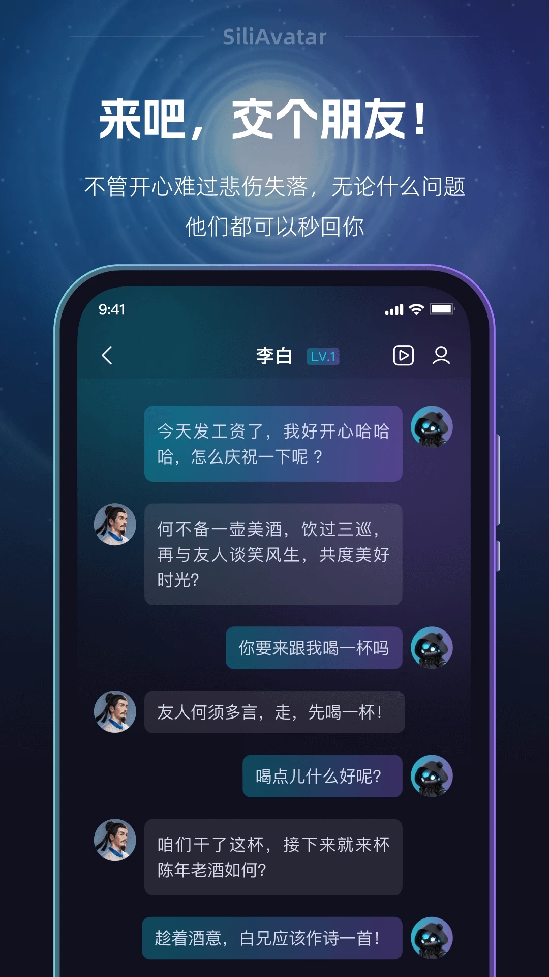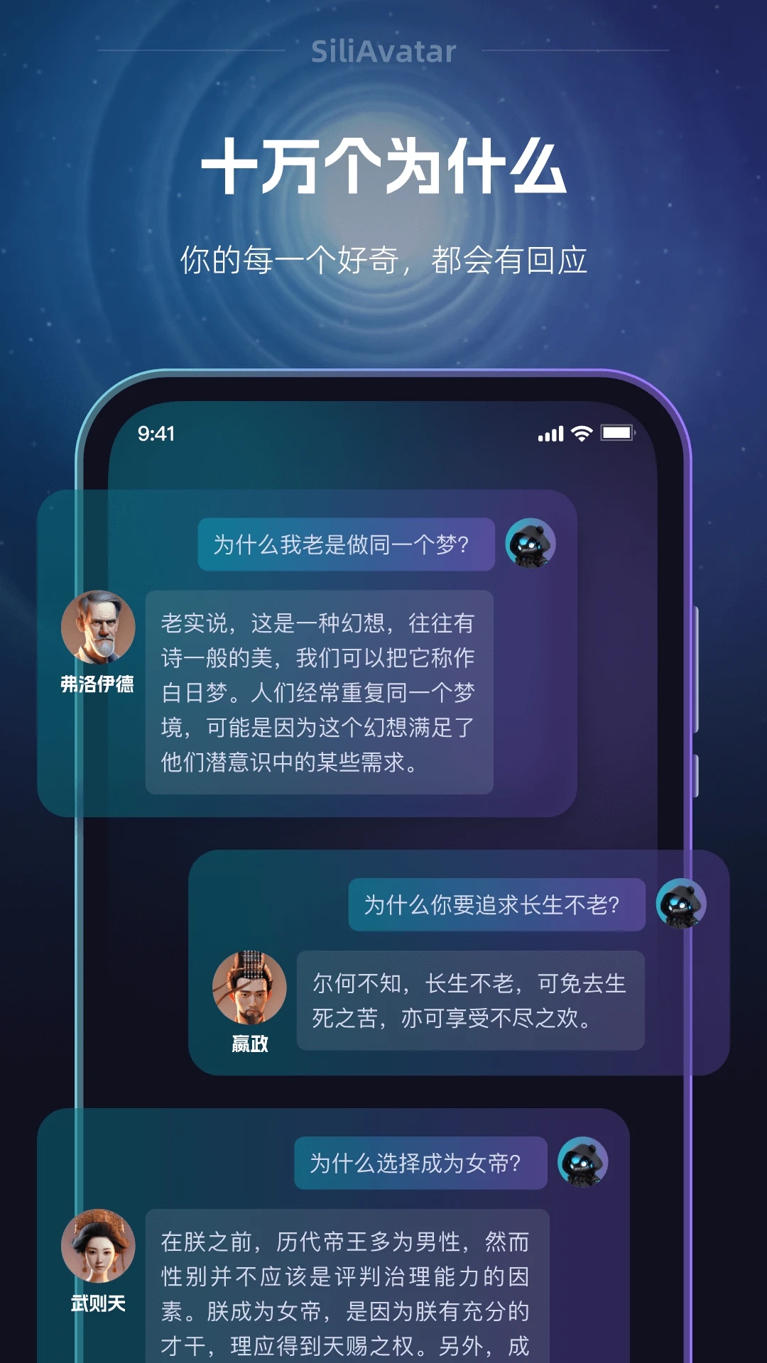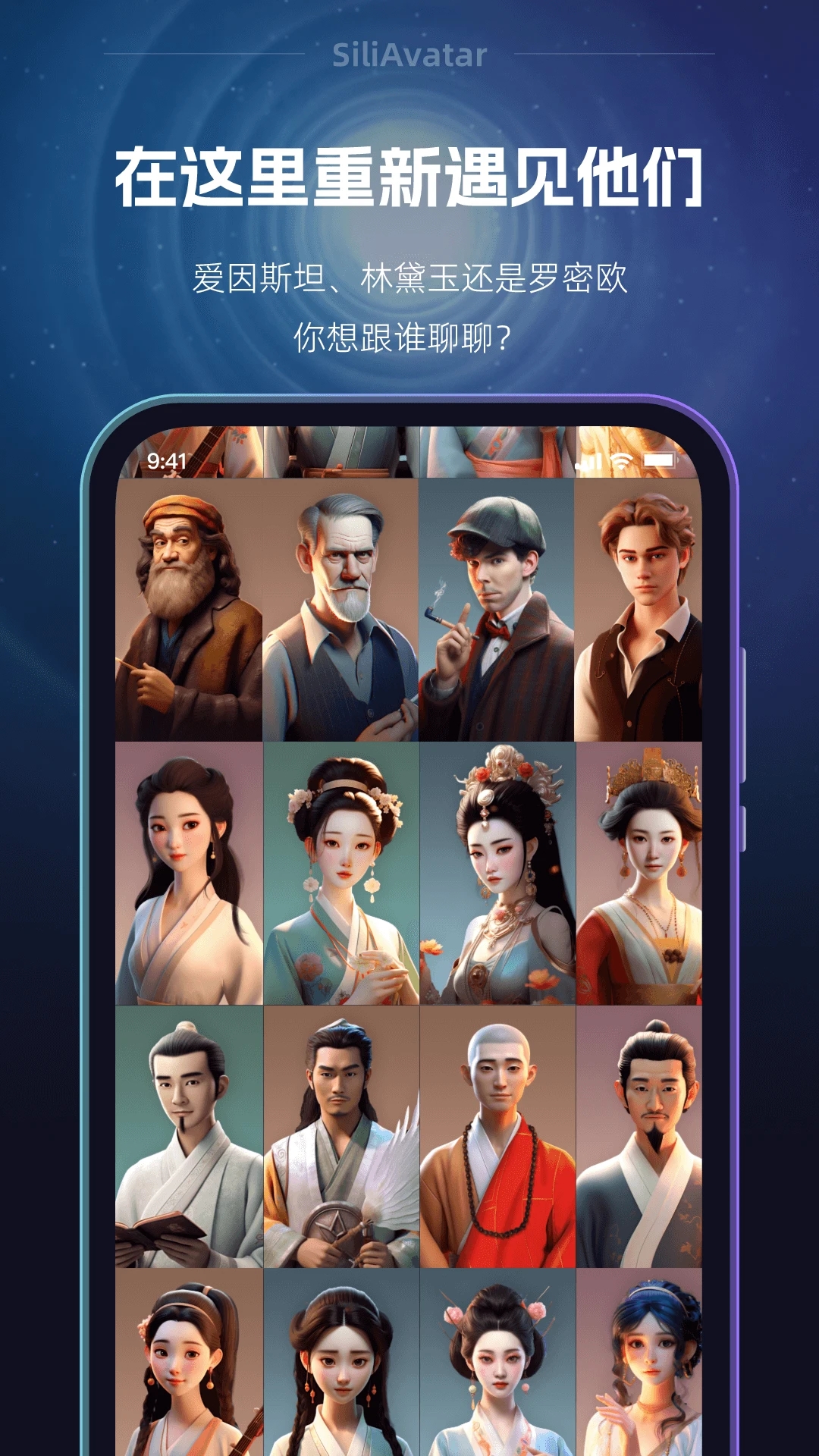 硅么是一款基于AI算法的虚拟社交APP,我们基于历史名人相关资料,让他们“重生”。在这里,我们可以突破时间和空间的限制,直接与他们对话。