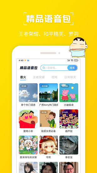 3、在线上带来了超多的精品语音包,每天都在持续更新中,可以快速进行选择。