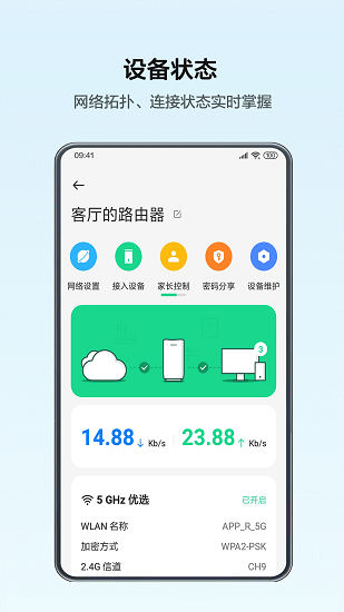 3、随时随地管理家里的WiFi设备,网络情况都可以一清二楚,安全上网。