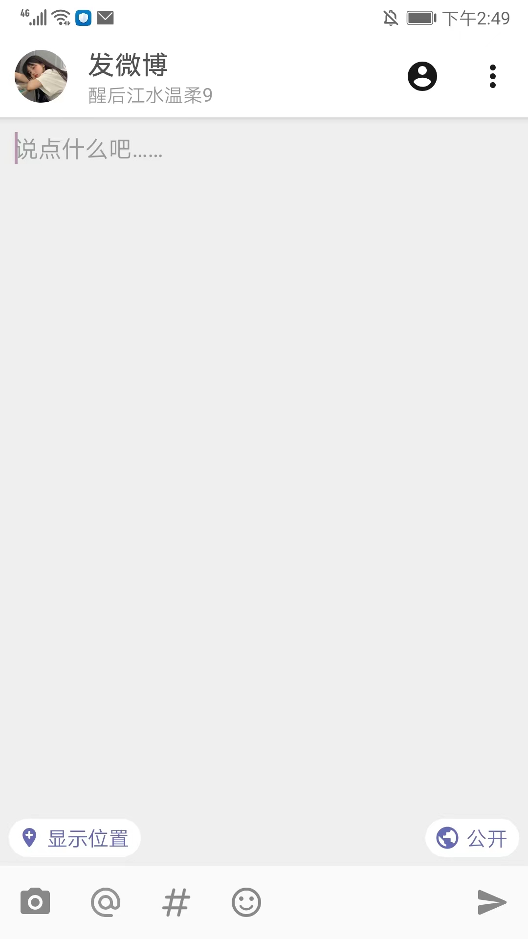 3、进入编辑界面,输入内容和添加图片后,选择右下角【三角形】图标后即可发布,