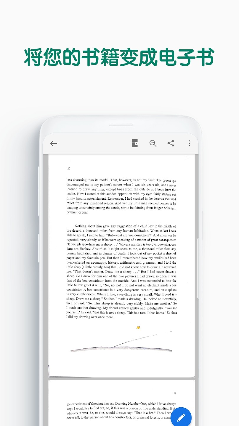 打开 vFlat Scan,将手机摄像头对准书籍、文档或照片,按下扫描按钮。