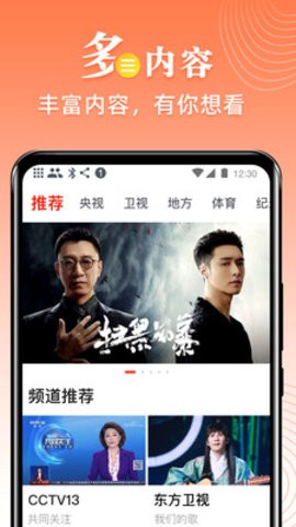 2、内容丰富:新闻联播、综艺节目、热门电视剧、体育赛事、音频电台、影视节目高清直播等。