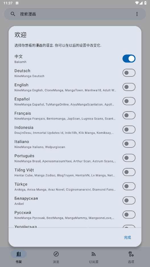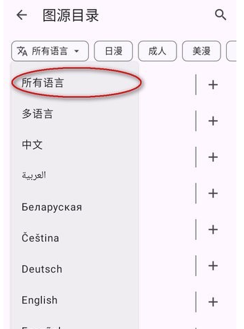 打开软件后,就可以选择图源,建议勾选多语言,这样就可以包括所有图源了。