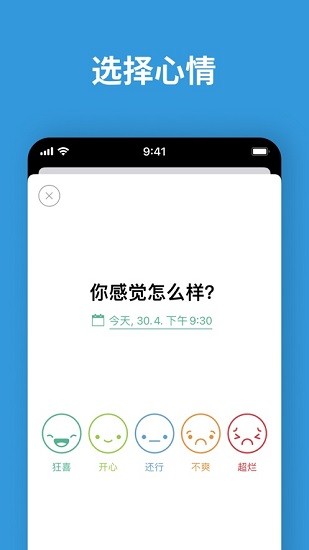 3、能够让大家快速的标记每日的心情图标,不想写日记可以标心情。